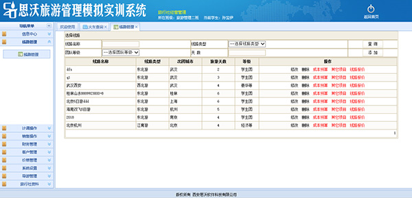 思沃旅游(you)(you)(you)管(guan)理(li)(li)(li)(li)模(mo)擬(ni)實訓系統分為(wei)模(mo)擬(ni)操(cao)作(zuo)(zuo)(zuo)和旅游(you)(you)(you)知識練(lian)習兩大(da)模(mo)塊,涵蓋旅行社(she)業的(de)(de)分銷、操(cao)作(zuo)(zuo)(zuo)、結算、統計分析等各大(da)業務模(mo)塊,該實訓教(jiao)(jiao)(jiao)(jiao)學(xue)(xue)平(ping)臺(tai)軟件(jian)具(ju)備團(tuan)隊(dui)計劃、旅游(you)(you)(you)預(yu)訂(ding)、客(ke)房預(yu)訂(ding)、機(ji)票預(yu)訂(ding)、景點門票預(yu)訂(ding)、團(tuan)餐(can)預(yu)訂(ding)、車輛(liang)預(yu)訂(ding)、收付(fu)款管(guan)理(li)(li)(li)(li)、供應商、團(tuan)隊(dui)客(ke)戶、VIP散(san)客(ke)管(guan)理(li)(li)(li)(li)等功能。從旅行社(she)經營管(guan)理(li)(li)(li)(li)、酒店經營管(guan)理(li)(li)(li)(li)、旅游(you)(you)(you)資源開發與(yu)管(guan)理(li)(li)(li)(li)、旅游(you)(you)(you)行政管(guan)理(li)(li)(li)(li)、導游(you)(you)(you)實務與(yu)技巧五個方面(mian)讓(rang)學(xue)(xue)生(sheng)參與(yu)旅游(you)(you)(you)管(guan)理(li)(li)(li)(li)的(de)(de)模(mo)擬(ni)操(cao)作(zuo)(zuo)(zuo),每(mei)個方面(mian)又細分為(wei)實際流程中(zhong)涉及的(de)(de)每(mei)個細節,因此,學(xue)(xue)生(sheng)可(ke)(ke)以(yi)從中(zhong)學(xue)(xue)習到(dao)旅游(you)(you)(you)管(guan)理(li)(li)(li)(li)的(de)(de)全面(mian)的(de)(de)操(cao)作(zuo)(zuo)(zuo)流程。此外,軟件(jian)中(zhong)教(jiao)(jiao)(jiao)(jiao)師端對應的(de)(de)實驗設(she)置,讓(rang)教(jiao)(jiao)(jiao)(jiao)師可(ke)(ke)以(yi)方便地為(wei)學(xue)(xue)生(sheng)設(she)置實驗的(de)(de)不同(tong)因素,同(tong)時,教(jiao)(jiao)(jiao)(jiao)師還可(ke)(ke)以(yi)查看學(xue)(xue)生(sheng)的(de)(de)操(cao)作(zuo)(zuo)(zuo)結果,從而能夠對學(xue)(xue)生(sheng)的(de)(de)實驗進行評(ping)價。教(jiao)(jiao)(jiao)(jiao)學(xue)(xue)軟件(jian)系統的(de)(de)使用可(ke)(ke)以(yi)提高(gao)學(xue)(xue)生(sheng)的(de)(de)學(xue)(xue)習興趣,同(tong)時也為(wei)教(jiao)(jiao)(jiao)(jiao)師減輕工作(zuo)(zuo)(zuo)負擔。本公司(si)為(wei)了更好(hao)滿足高(gao)校的(de)(de)教(jiao)(jiao)(jiao)(jiao)學(xue)(xue)需求(qiu),會根據高(gao)校的(de)(de)需求(qiu)提供旅游(you)(you)(you)管(guan)理(li)(li)(li)(li)實訓室解決方案。